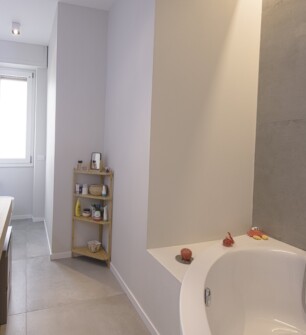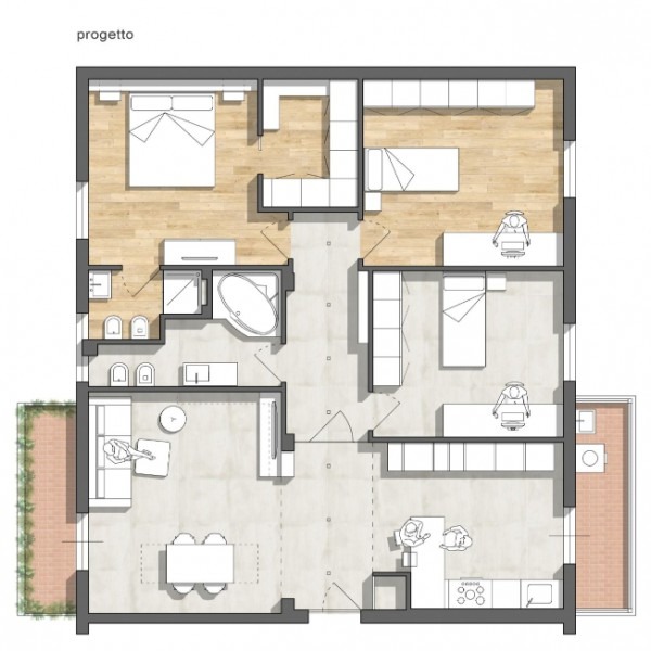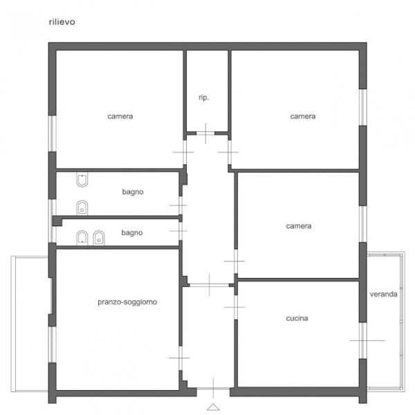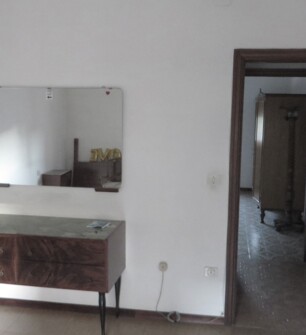 Il classico appartamento anni ‘60 a pianta pressoché quadrata, con un lungo e buio corridoio centrale sul quale si affacciano tutte le stanze e due bagni stretti ed angusti.