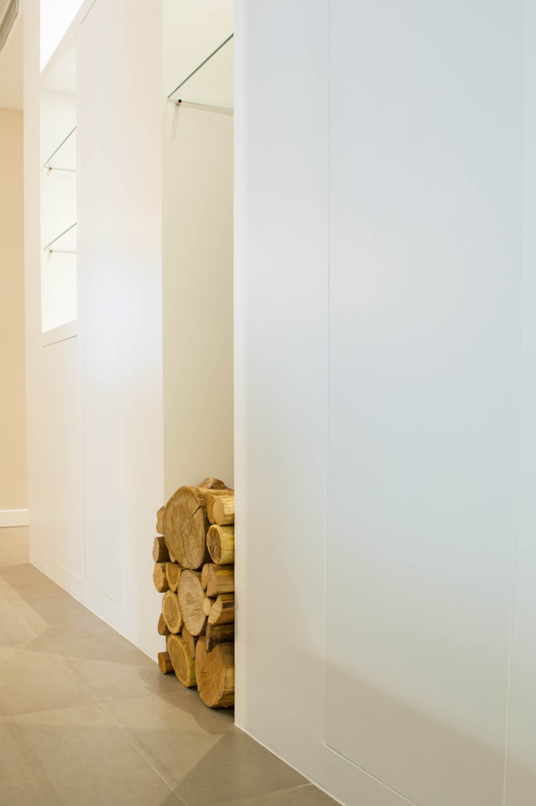 Nel progetto i materiali e le forme classificano gli spazi in un gioco equilibrato. La matrice progettuale è rappresentata da l’elemento in acciaio che, sviluppandosi nelle tre dimensioni, unisce esterno ed interno in un unico oggetto. Il rivestimento legno scandisce ritmo e simmetrie dialogando con le aperture.