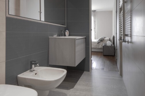 La camera matrimoniale nasconde una sorpresa nell’armadio… Aprendo la prima anta si accede al bagno privato.