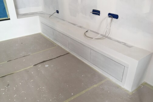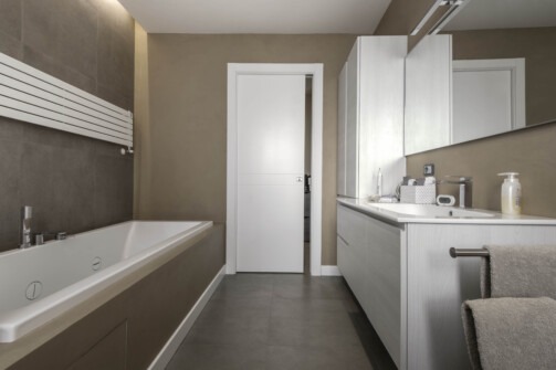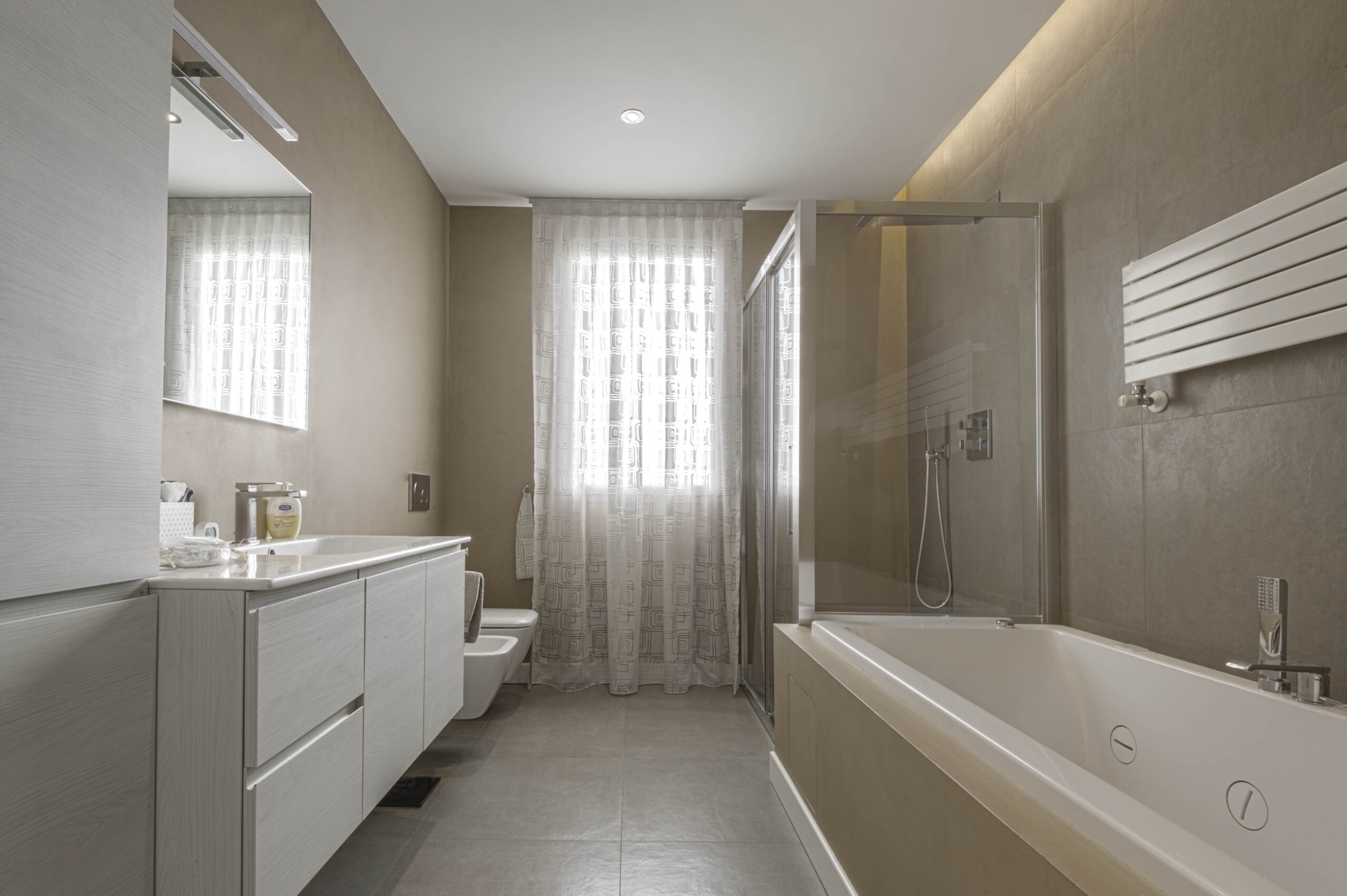 La palette di colori scelta è in linea con i gusti dei committenti che volevano creare ambienti moderni e minimal, con una predilezione per i toni neutri.